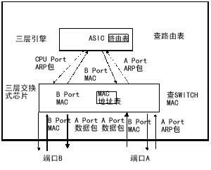 数据送至三层引擎。在三层引擎中,ASIC芯片查找相
